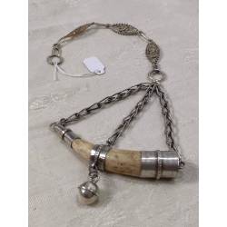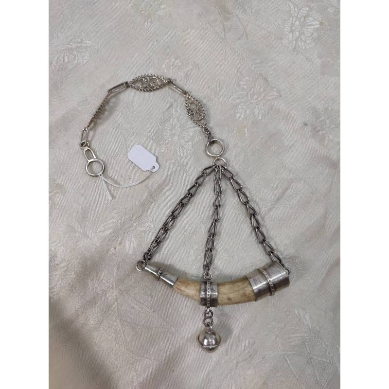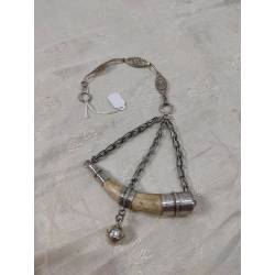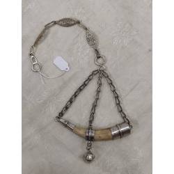 Amuleto protector compuesto por una cadena de plata de la que pende una punta de cuerno de ciervo engarzada en plata.