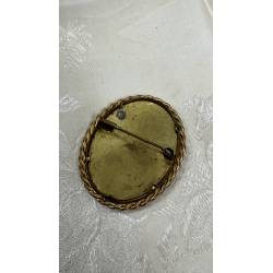 Antiguo broche decorado con un dibujo de una cesta de flores.