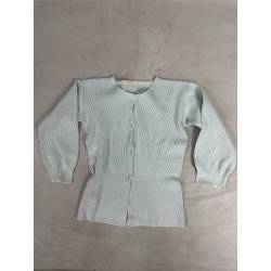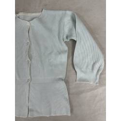 Mide 47 cm de hombros, 98 cm de pecho, 56 cm de alto y 42 cm de largo de manga.