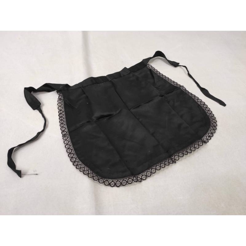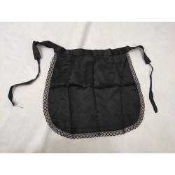Delantal de raso de seda, de color negro. Con puntilla en le lado.