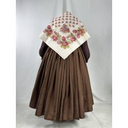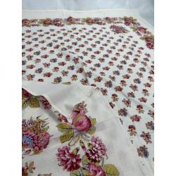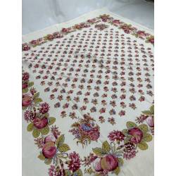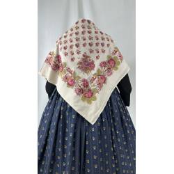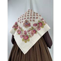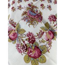 Pañuelo de algodón estampado en colores hacia granates sobre fondo crema.