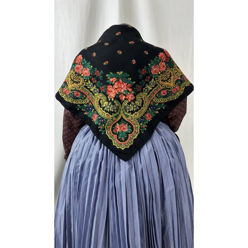 Pañuelo portugués de color negro, estampado.