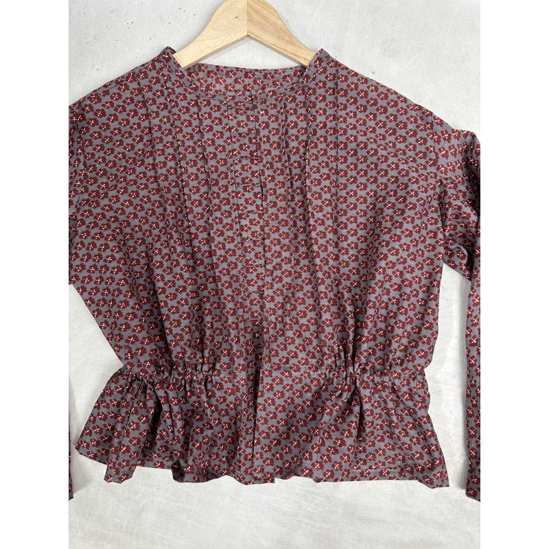 Chambra copiada de una antigua, con un tejido de algodón estampado a mano con planchas de madera, imitando a las indianas antiguas.