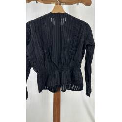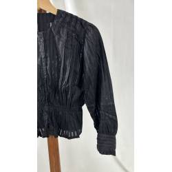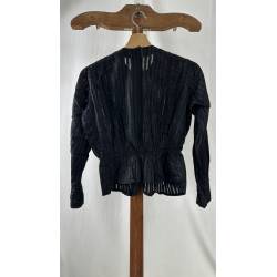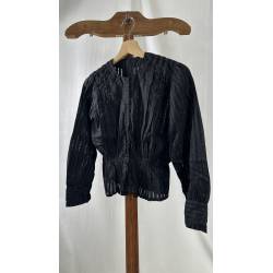 Mide 38 cm de hombros, 55 cm de largo de manga, 110 cm de contorno de pecho y 48 cm de alto.