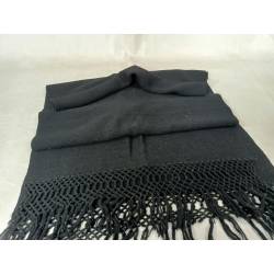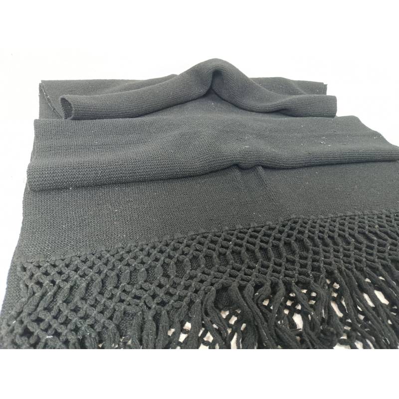 Antiguo tapabocas negro, de lana. Con fleco en dos lados.