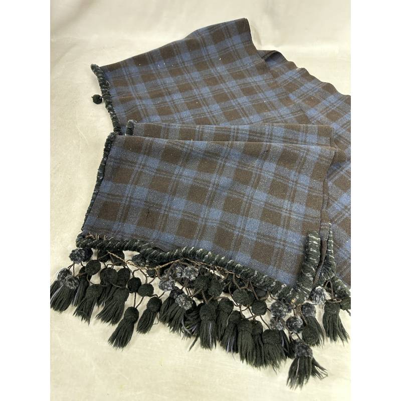 Antigua manta de cuadros azules y negros.