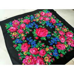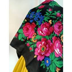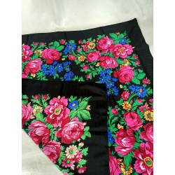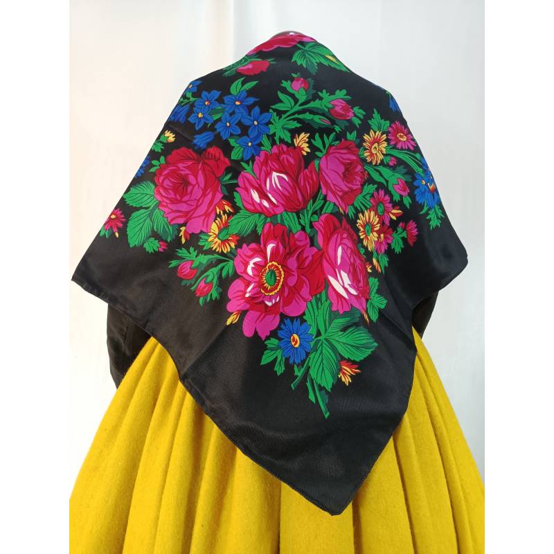 Pañuelo nuevo, negro y estampado en colores.
