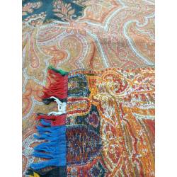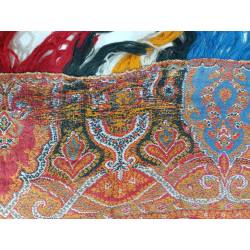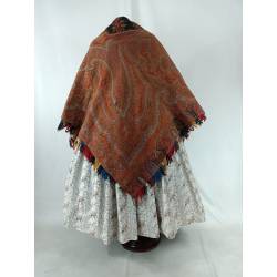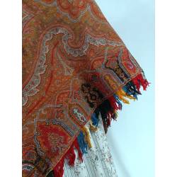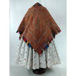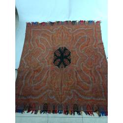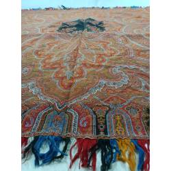 Antiguo pañuelo o mantón alfombrado en colores anaranjado.