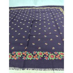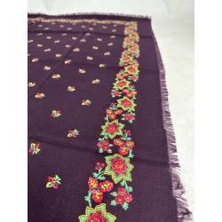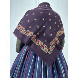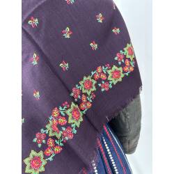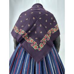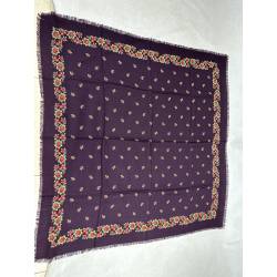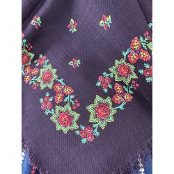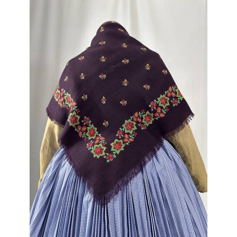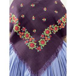 Pañuelo de merino de fondo color vinagre, estampado con flores.