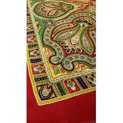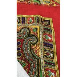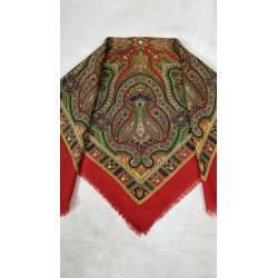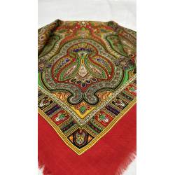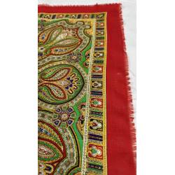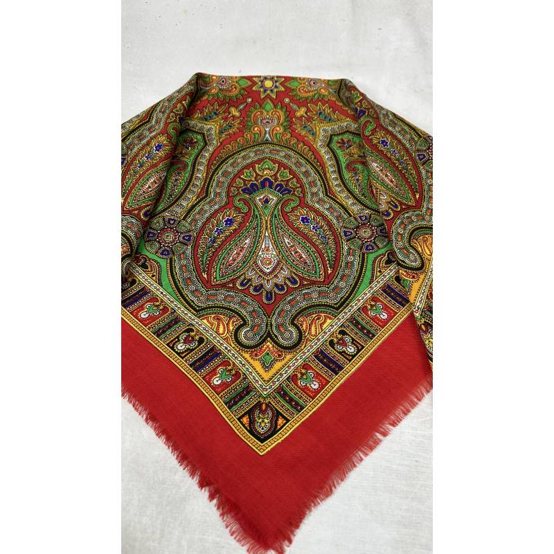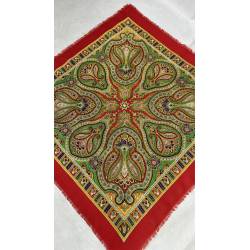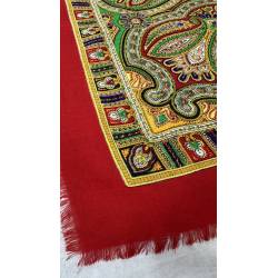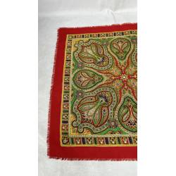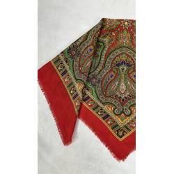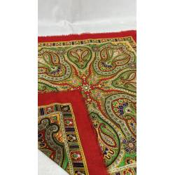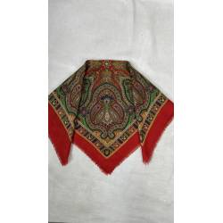 Antiguo pañuelo de lana de color rojo, estampado.