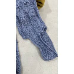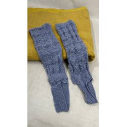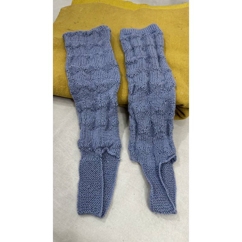 Medias de lana de color azul, tejidas a mano. De estribo.