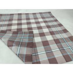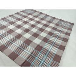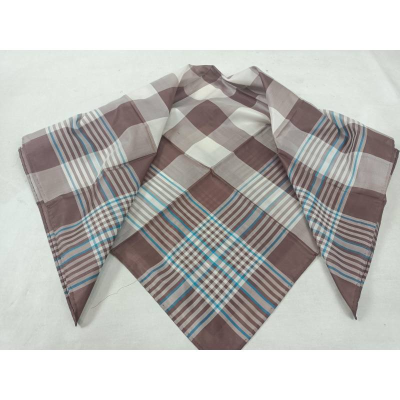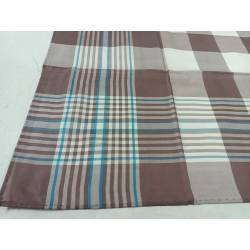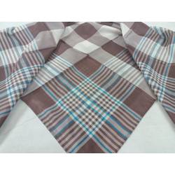 Pañuelo de seda pura msin meclar. Diseño de cuadros en tonos marrones y azul.