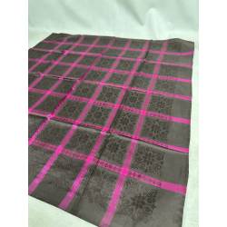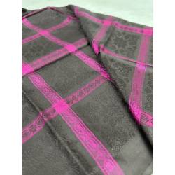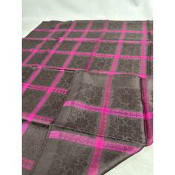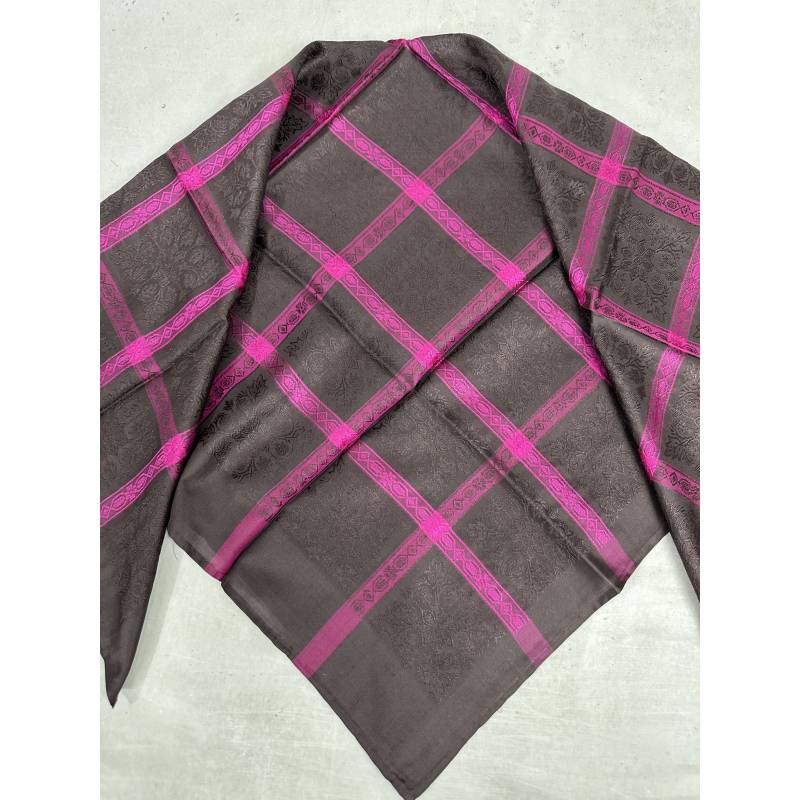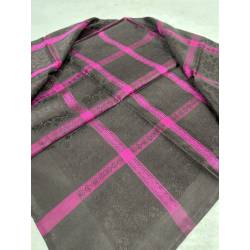 Pañuelo de seda pura, de cuadros, en tonos chocolate y fucsia.
