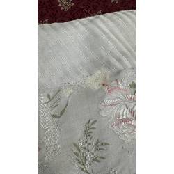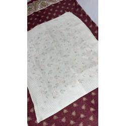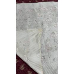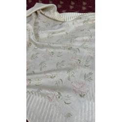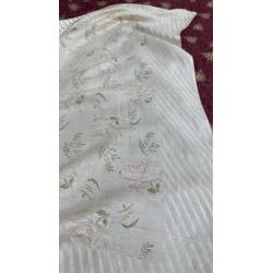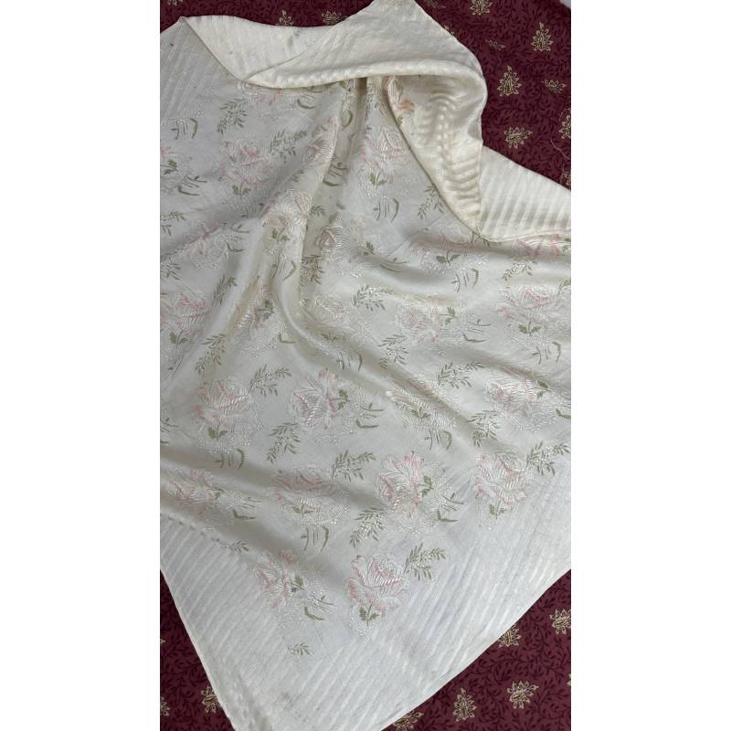 Antiguo pañuelo brocado, en tonos blanco y rosa.