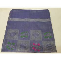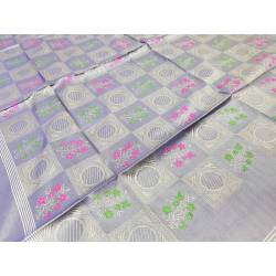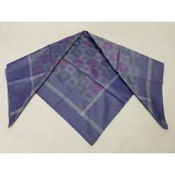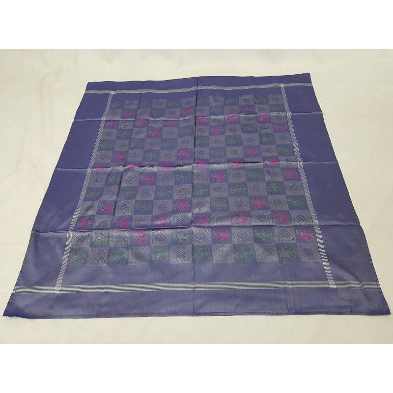 Pañuelo de seda brochado, color azul grisáceo, brochado verde y fucsia