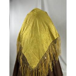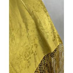 Pañuelo adamascado, de seda pura, de color amarillo.