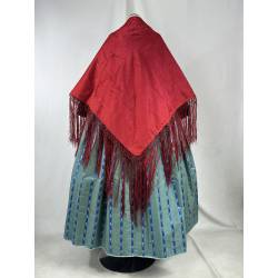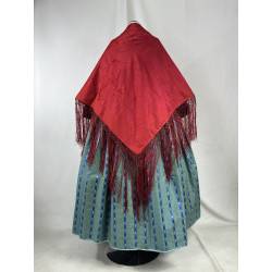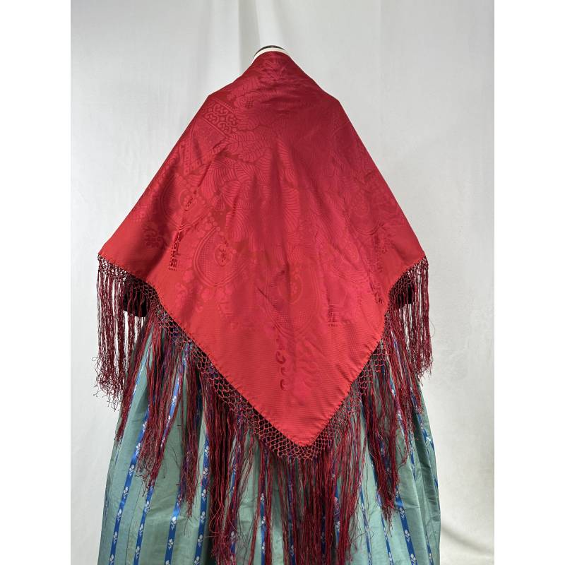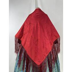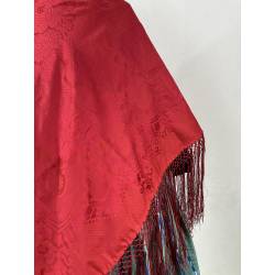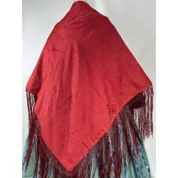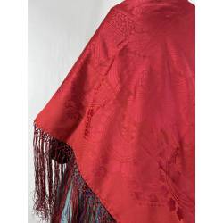 Pañuelo o mantón de seda, adamascado de color rojo.