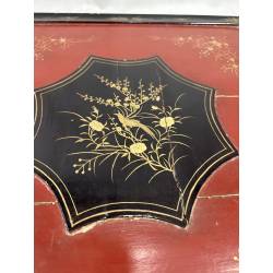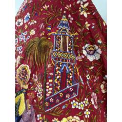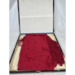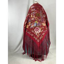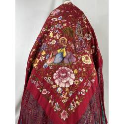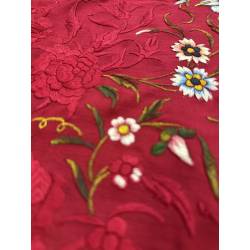 Antiguo mantón de Manila de seda, de color rojo.