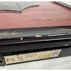 Conserva su caja de origen, lacada, y su caja interna de cartón pintado.