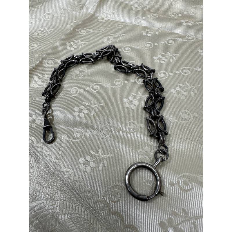 Antigua cadena o leontina, plateada, para llevar el reloj.