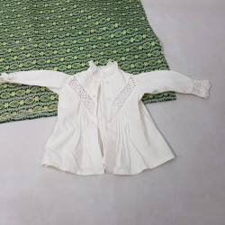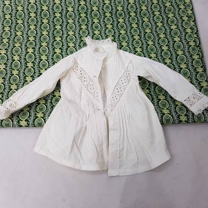Mide 18 cm de hombros, manga de 22 cm y 28 cm de alto.