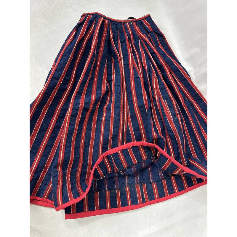 Antiguo refajo de virones, de rayas en colores azul y rojo.