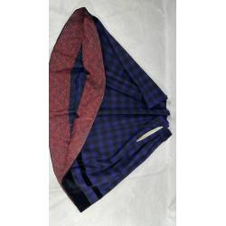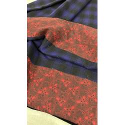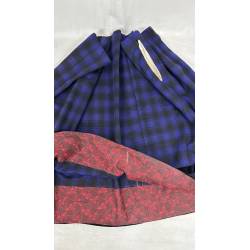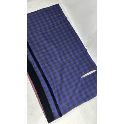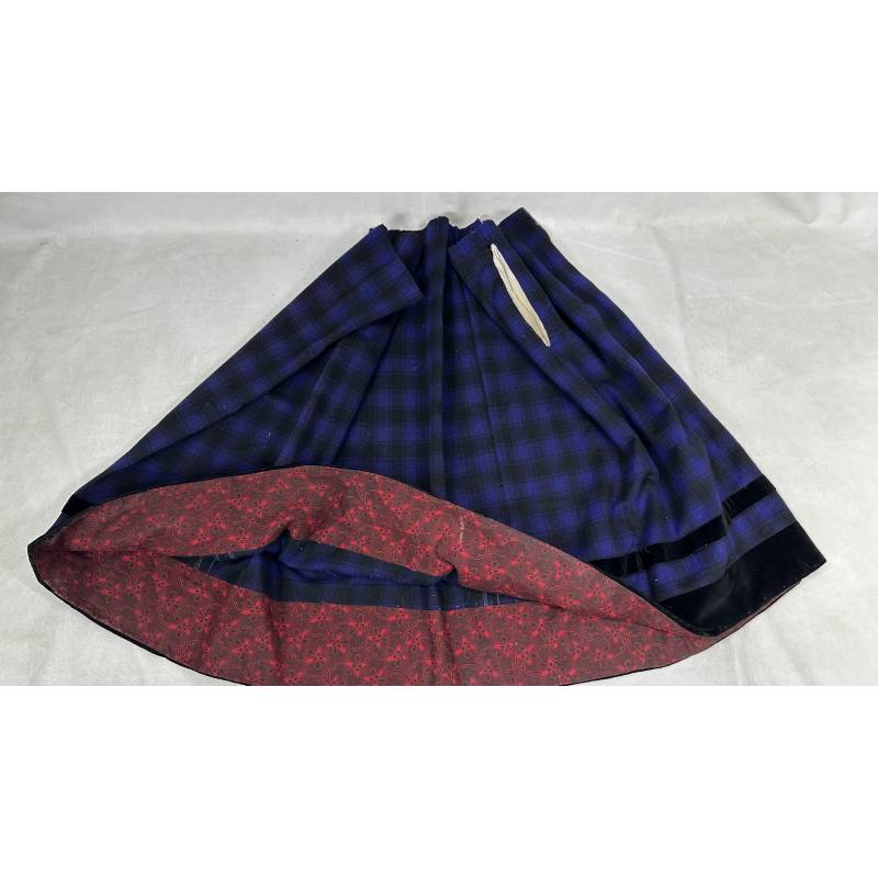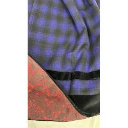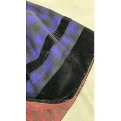 Antiguo refajo de tartán de lana a cuadros negro y azul hacia morado.