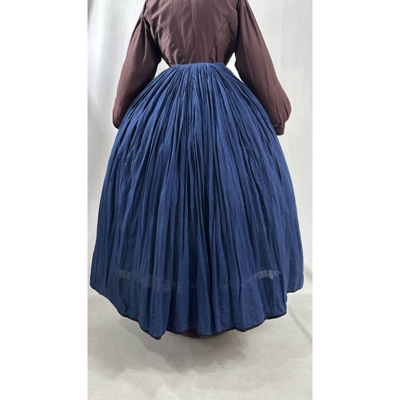 Antigua saya de percal de color azul, con topos pequeñitos.