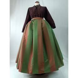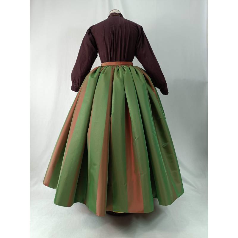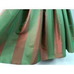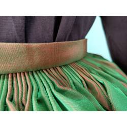 Saya de seda tornasolada en tonos verde y marrón anaranjado.