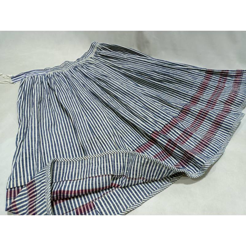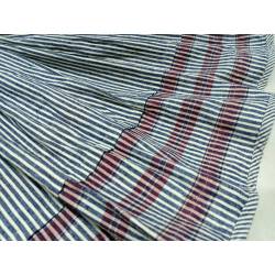 Antiguo refajo de algodón, de virones azules y blanco y cenefa en la parte baja.