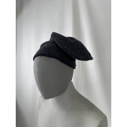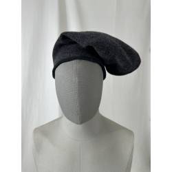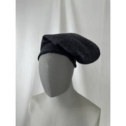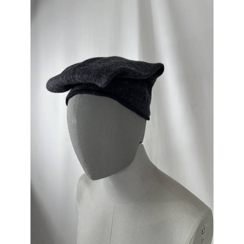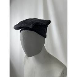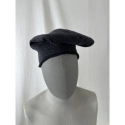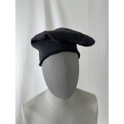 Barretina o gorra de lana de color gris oscuro casi negro.