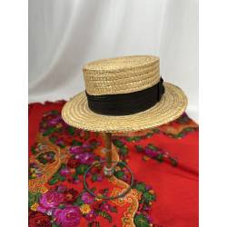 Antiguo canotier o sombrero de paja. La marca es Española.