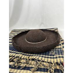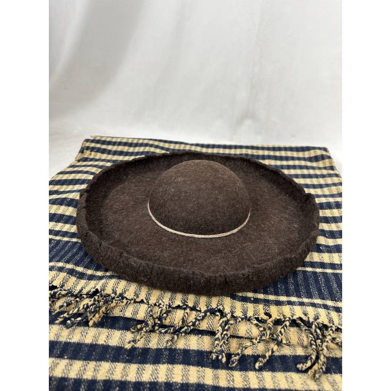 Sombrero pardo de ala ancha.