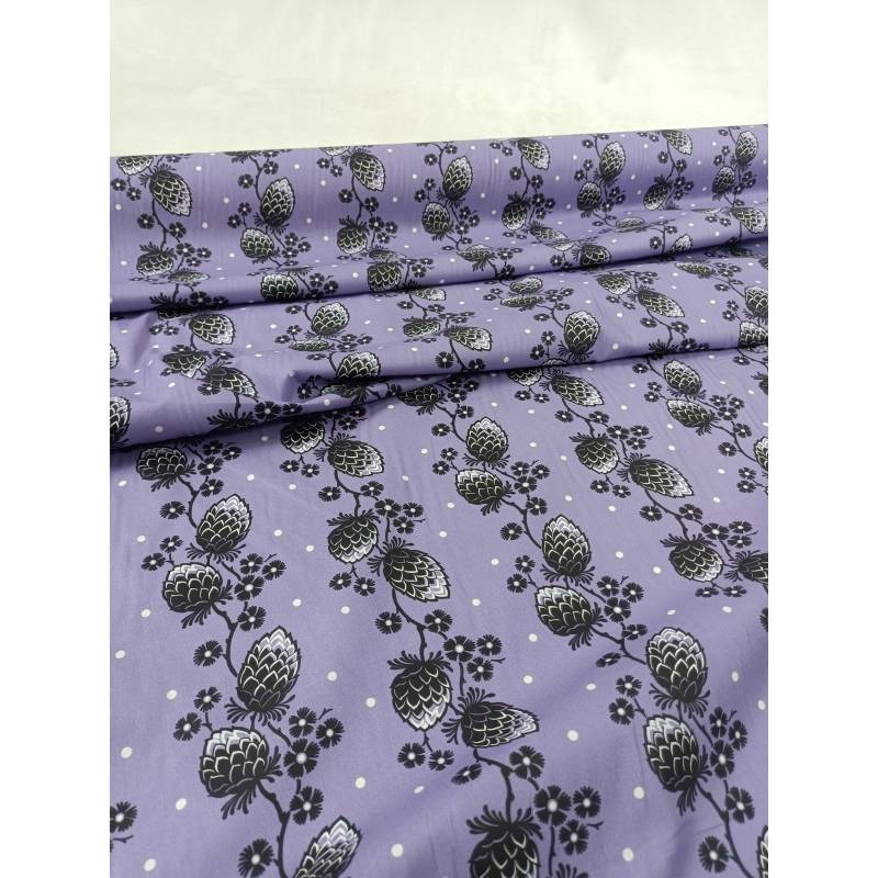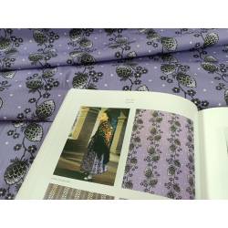 Tejido de percal lila, estampado. Conocido en Fraga como de piñas.