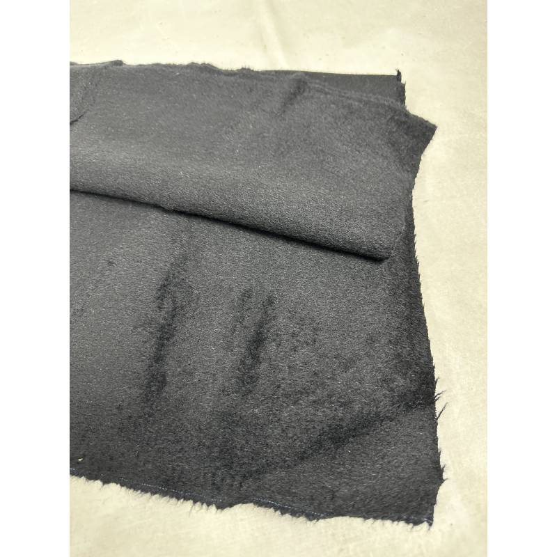 Antiguo retal de tejido de paño negro, por una caras es de pelo peinado.