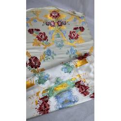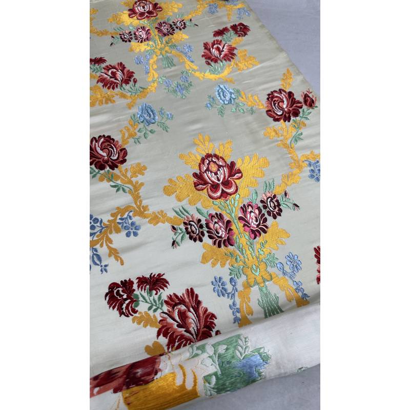 Tejido de espolín de seda, hecho en telar manual.