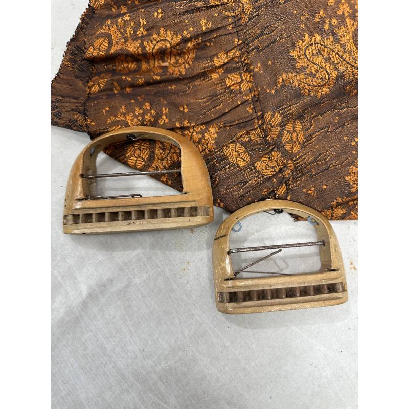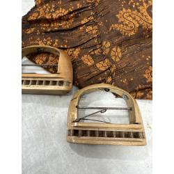 Lote de dos lanzaderas antiguas de madera, para telar.