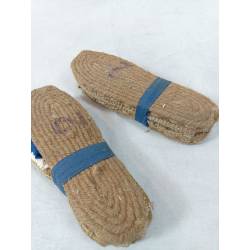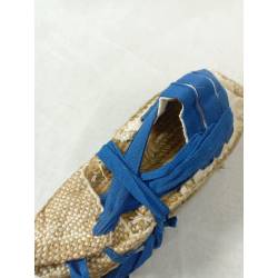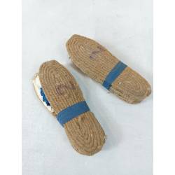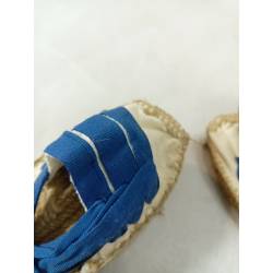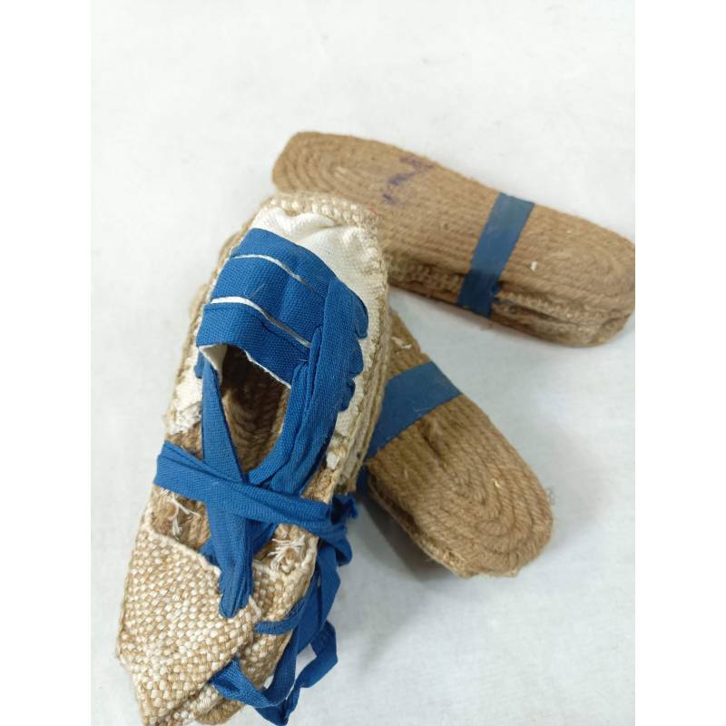 Antiguas alpargatas de cáñamo, de loneta blanca y vetas azules.